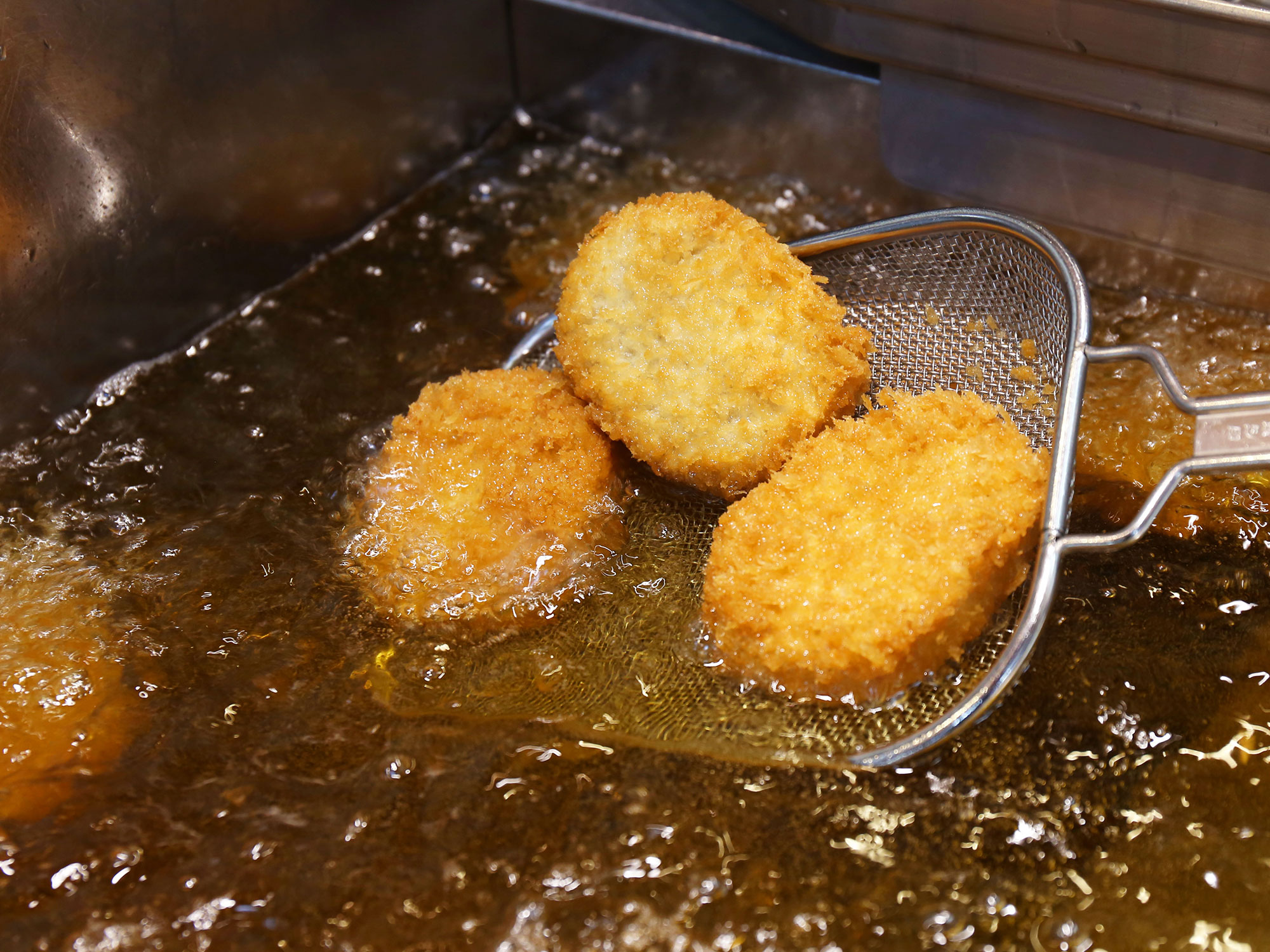 コロッケ・クロケッタは、素材にこだわったコロッケ専門店です。じゃがいもや玉ねぎ、お肉などは、その時期ごとに合ったより良いものをひとつひとつ選定して使用しています。保存料や添加物などはできるだけ使用せず、安心して食べて頂けるコロッケをお作りしています。