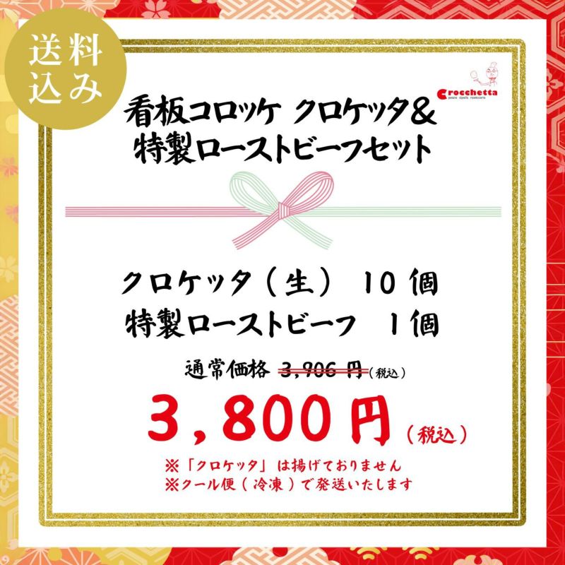 クロケッタの看板コロッケ"クロケッタ″と、特製ローストビーフが入った送料込みのお得なセットです。